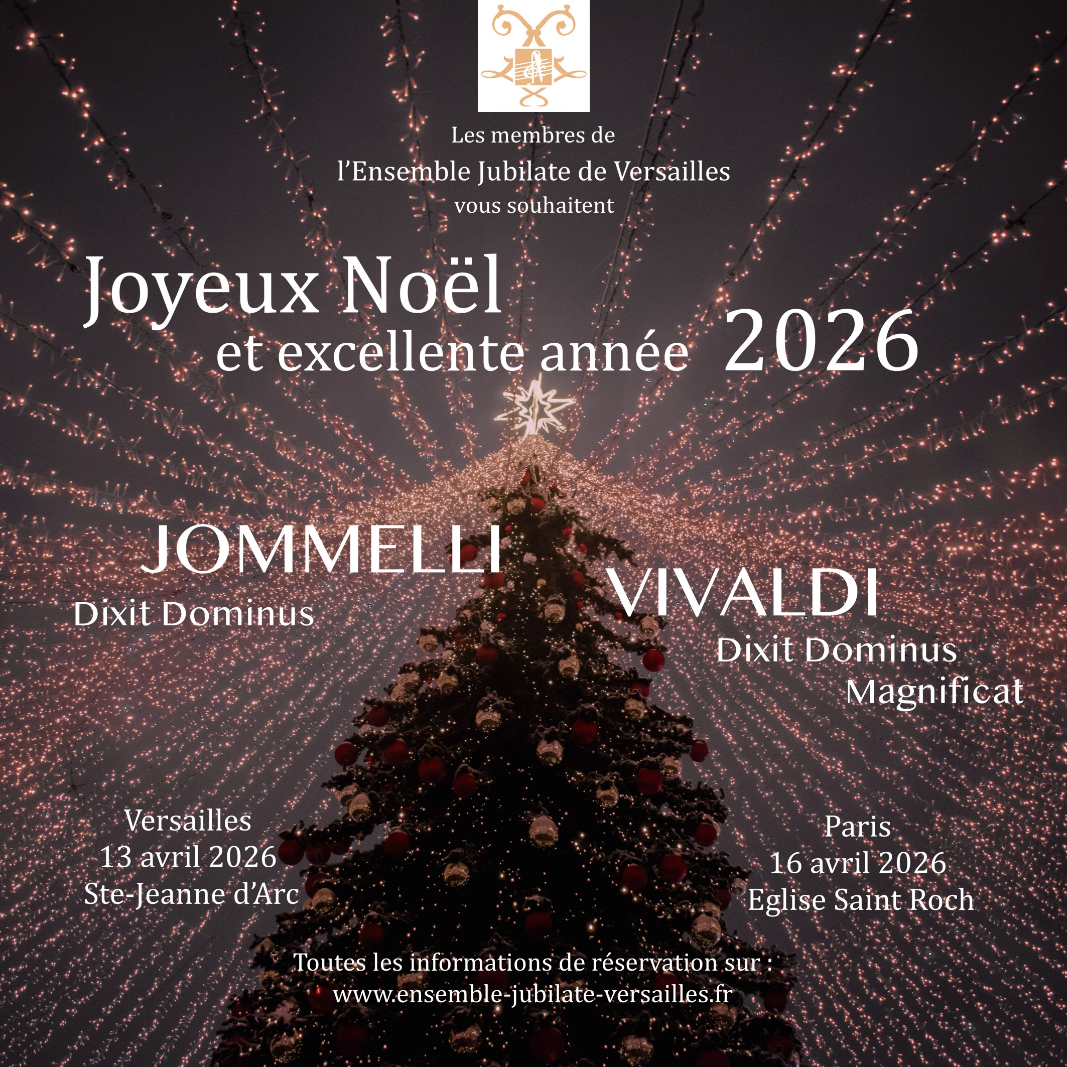 Les membres de l’Ensemble Jubilate de Versailles vous présentent leurs vœux et vous proposent pour NOËL, jusqu’au 21 janvier 2026, des places de concert à 15€ au lieu de 21€